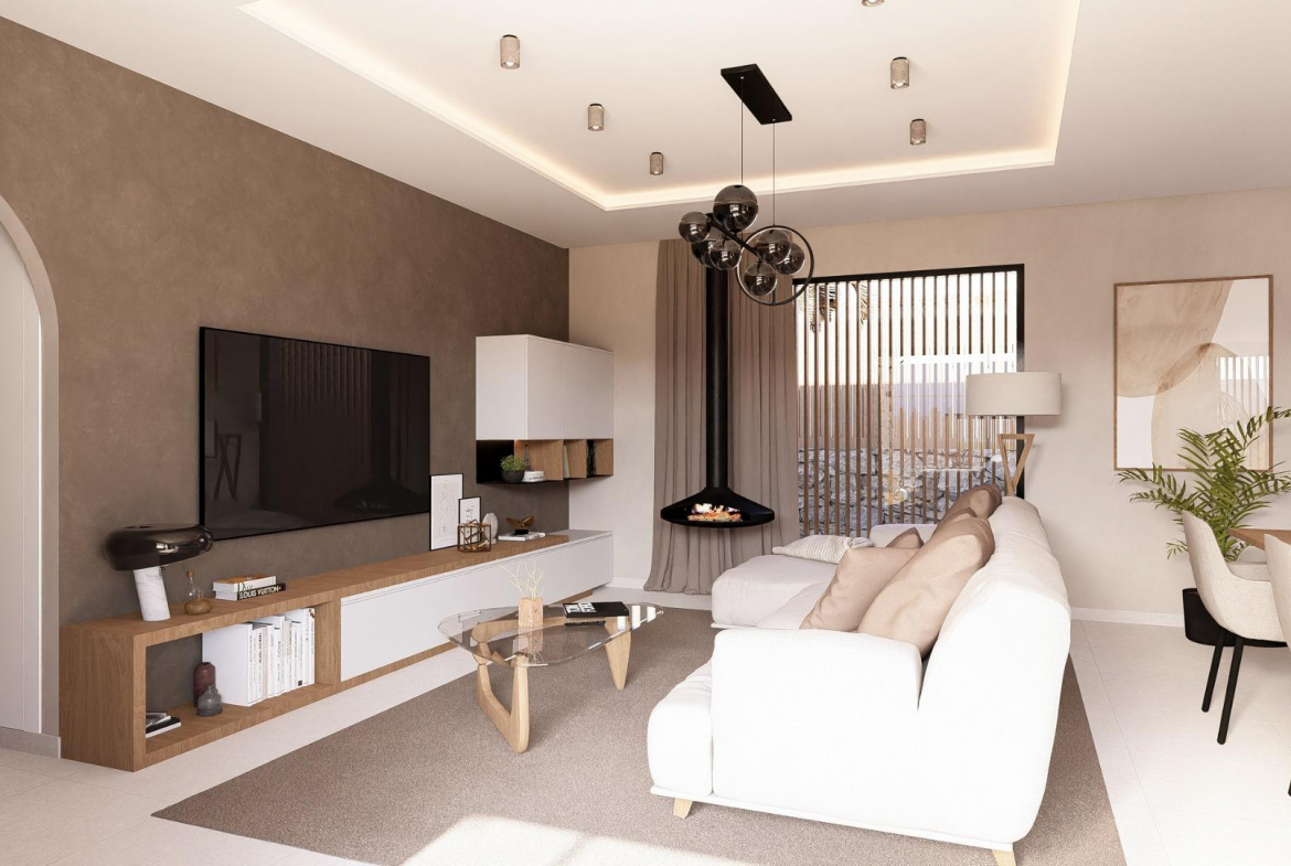 NEW BUILD VILLAS IN ALTAONA GOLF RESORT, MURCIA New Build residential of beautiful villas in Altaona Golf resort, Murcia. New Build villas with open plan kitchen, 2 bedrooms, 2 bathrooms, guest toilet, terrace, private garden with pool and parking space.. Features: • The properties have Energy Certificate Rating A. • Ducted air conditioning installation with heat pump. Throughout the house except for bathrooms. • Electric underfloor heating in the living room and bathrooms with individual thermostat per zone. • Air renewal system in the kitchen, bathrooms, laundry room, and guest toilet. • Kitchen Includes extractor hood and electric induction hob with 3 cooking points. • Includes LED lighting in the living room, hallway, and exterior. The rest of the rooms are prepared for the future owner to install their lighting. • USB sockets in all bedrooms. • Electronic intercom for access from the exterior to the interior path. Doorbell at the property entrance. • Home automation system with two smart switches. • Private landscaped garden with drip irrigation system and the pool. • Exterior fencing of the urbanisation. • Vehicle access gates to the urbanisation: Metal sliding gate with remote opening system Residential located in Altaona Golf just 15 minutes by car from the centre of Murcia capital and 20 minutes from the beaches you can enjoy the tranquillity and security offered by the Golf Course that has 18 holes and the comfort to live close to all services. Murcias airport Corvera only 15 minutes drive away.