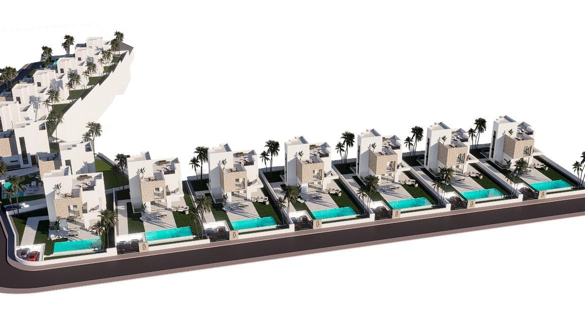 NEW BUILD VILLAS IN FINESTRAT New Build villas located in Balcon de Finestrat. New Build deverlopment of 15 totally independent luxury villas in a unique setting close to the best beaches of the Mediterranean and all services. Villas build over 2 floors and has 3 bedrooms, 3 bathrooms, open plan kitchen with lounge, build-in wardrobes, private solarium, garden with the pool and parking space for 2 cars. An optional basement and lift at an extra cost. Villas located close to 2 golf courses, theme parks, a large shopping centre and a few minutes from the beaches of Benidorm. Finestrat located in the Marina Baixa region of the Costa Blanca, close to neighbouring Benidorm and about 40 kilometres from the city of Alicante and the international airport. Benidorm is just a five-minute drive from the properties and offers all the services you would need including shops, bars, restaurants, supermarkets, banks, pharmacies and several private international schools. Close to the beaches of Levante, Poniente and Cala de Finestrat, with more than 6km in length that are among the best in Europe awarded by the European Union with Blue Flags. All leisure services such as the theme parks of Aqua Natura, Terra Mítica, Terra Natura, Aqualandia and Mundomar, Sierra Cortina and Villaitana Golf courses, hiking and climbing in Puig Campana an incomparable natural setting or enjoy of nautical sports.
