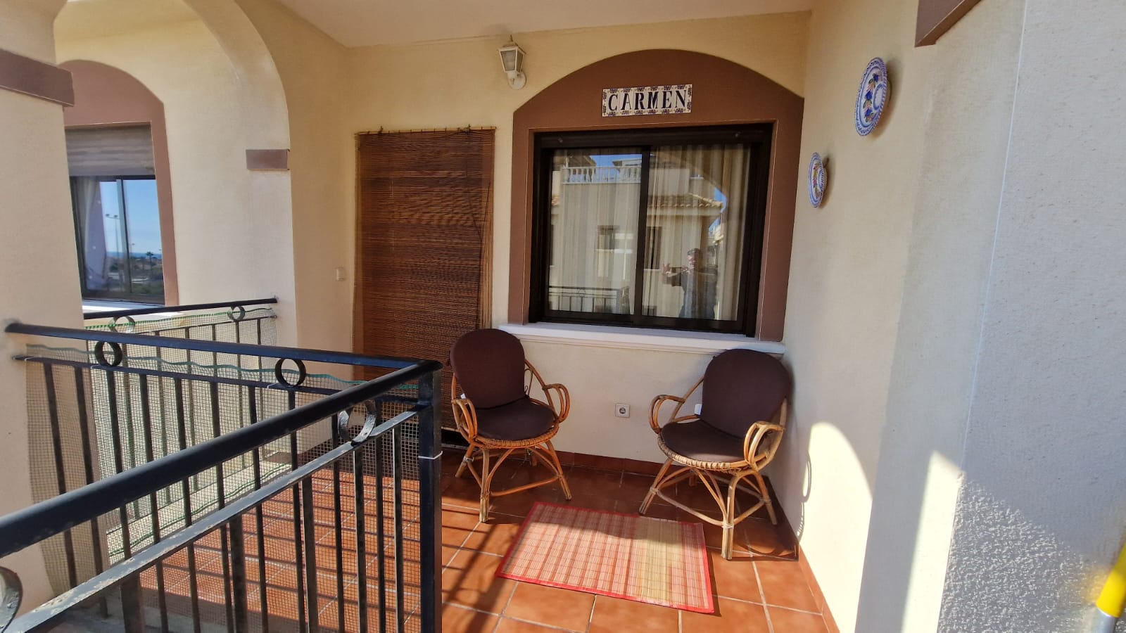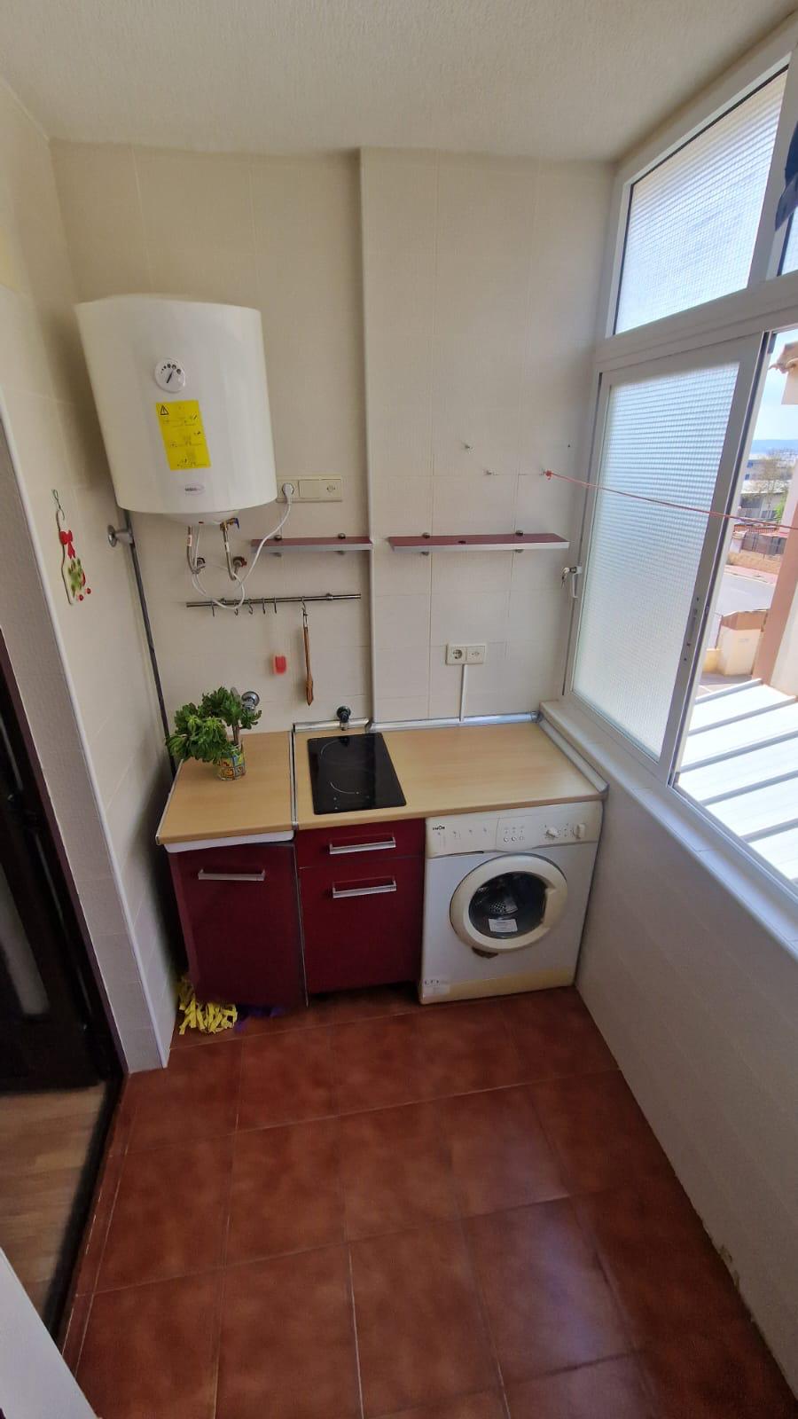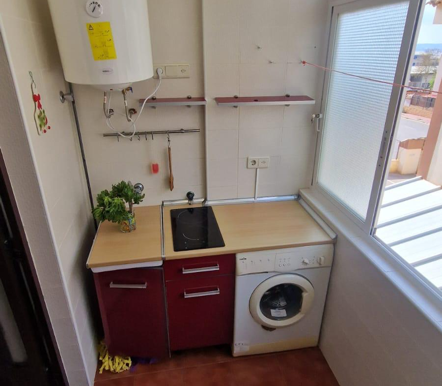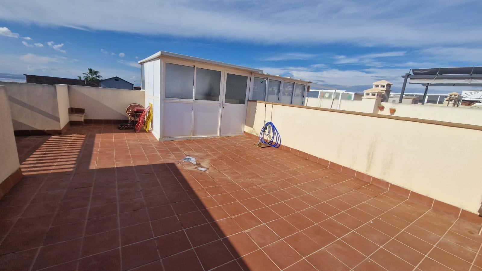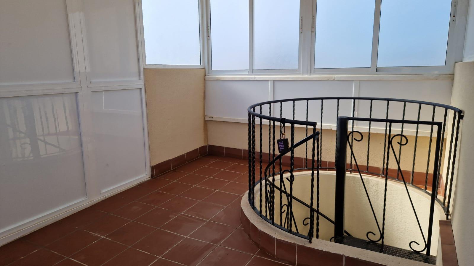 It has a porch with a terrace at the entrance to the house, a living room, a fully equipped open kitchen, 2 double bedrooms with fitted wardrobes, a bathroom with shower and window, a gallery (with washing machine, storage cupboards,…) and a large solarium (about 52 m2) with unobstructed views. The solarium is accessed by internal staircase from the gallery and when you reach the solarium, the staircase is covered by an aluminium structure with windows.
