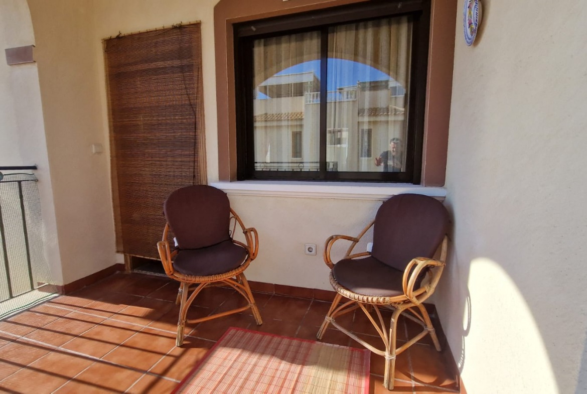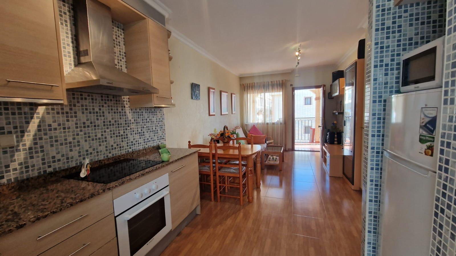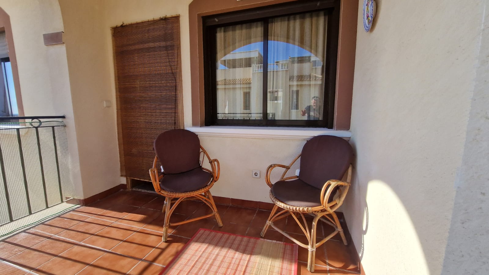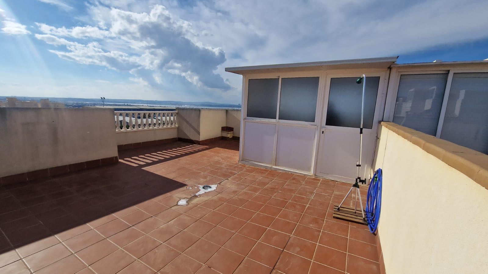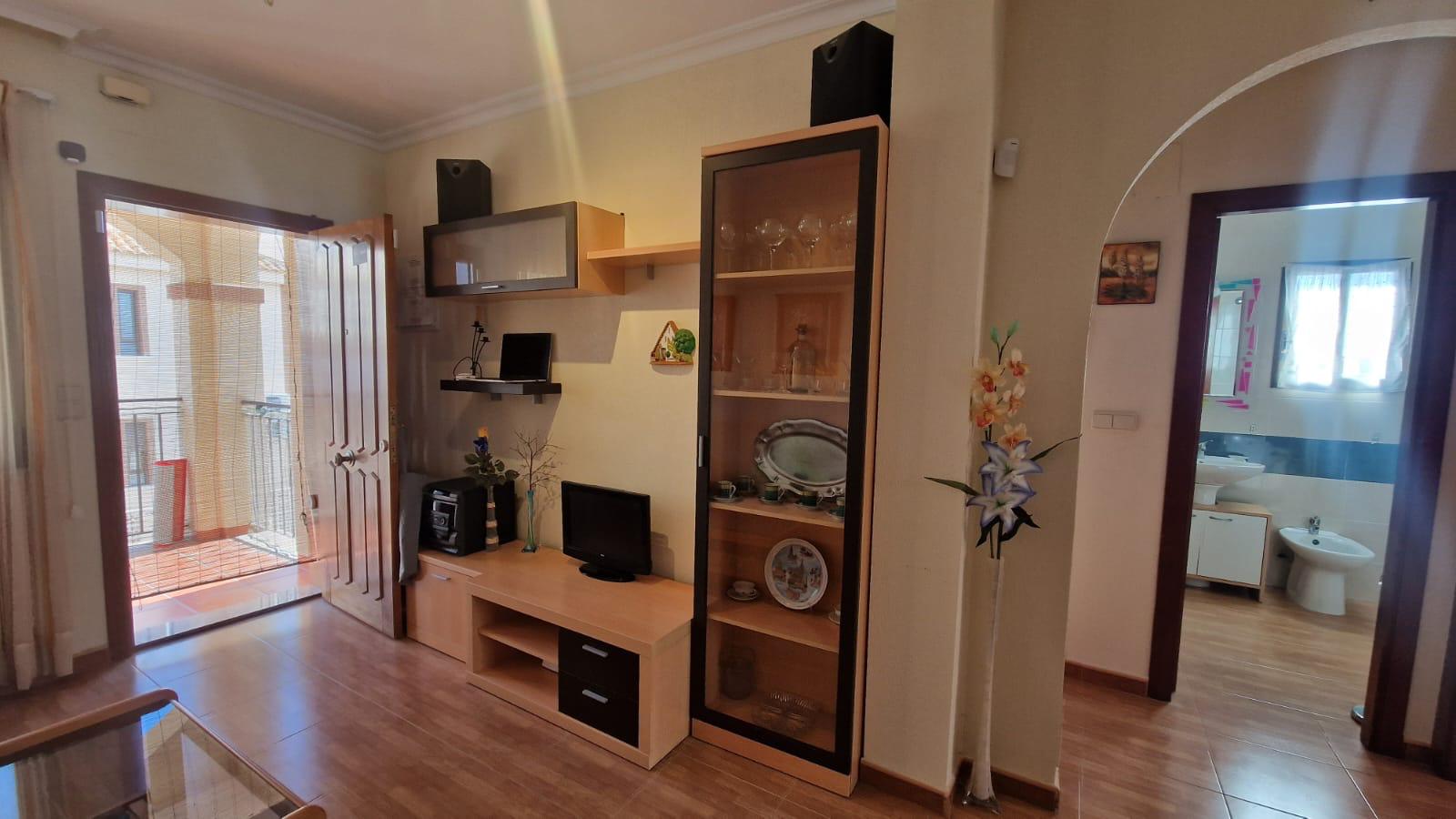 It has a porch with a terrace at the entrance to the house, a living room, a fully equipped open kitchen, 2 double bedrooms with fitted wardrobes, a bathroom with shower and window, a gallery (with washing machine, storage cupboards,…) and a large solarium (about 52 m2) with unobstructed views. The solarium is accessed by internal staircase from the gallery and when you reach the solarium, the staircase is covered by an aluminium structure with windows.