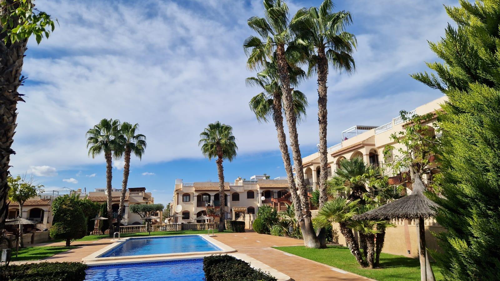 Fantastic corner bungalow on the first floor, very good condition, in Residential with gardens and pool, about 10 minutes drive from the beaches.