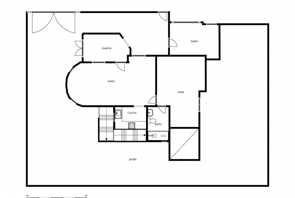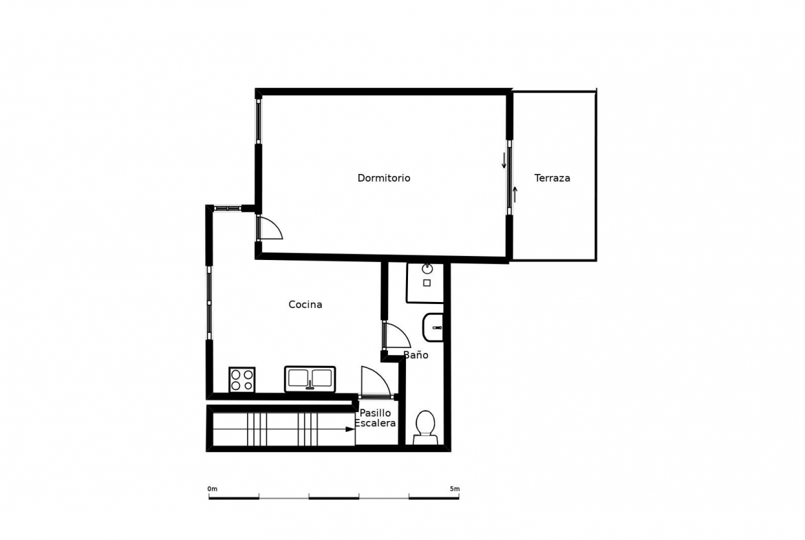 On the upper floor of the cottage there is an independent apartment of 34 m2, which includes a kitchen with living room, two additional bedrooms and a bathroom.