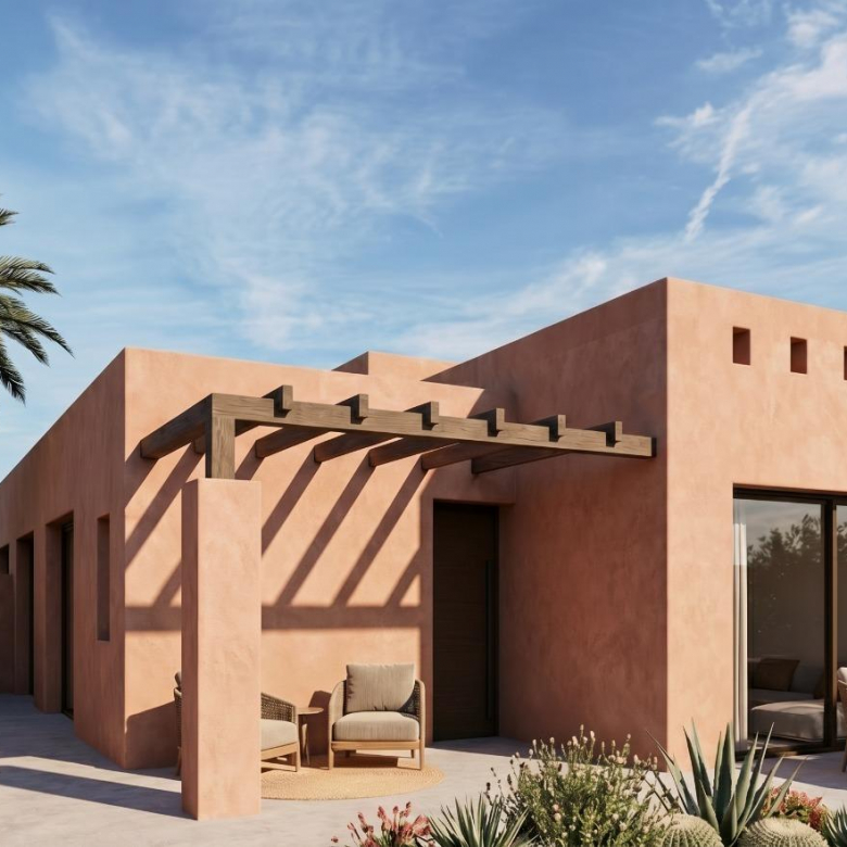 Modern, newly built semi-detached and terraced homes with private pools at El Alba Resort-Torre Pacheco Contemporary homes in a growing Mediterranean holiday community This new development comprises 16 exclusive semi-detached and terraced homes, situated at El Alba Mediterranean Resort in Torre Pacheco. Designed as single-storey homes, these modern properties offer a perfect blend of comfort, functionality and Mediterranean outdoor living. El Alba Resort is an up-and-coming residential area surrounded by open countryside and golf courses, within easy reach of the town of Roldán, where you will find supermarkets, restaurants, banks and everyday amenities. The complex already features a social club with a swimming pool and restaurant, and a retail area is currently under development, adding further convenience and value to the location. Single-storey home with private garden and sun terrace Each property features 2 bedrooms and 2 bathrooms, one of which is en-suite, with an open-plan kitchen connected to a bright living room. The layout is carefully designed to maximise natural light and create a seamless connection between indoor and outdoor spaces. All homes include: Fitted kitchen with appliances Bathrooms with vanity units, mirrors, lighting and shower screens Fitted wardrobes with drawers in the bedrooms Pre-installation for ducted air conditioning Indoor and outdoor LED lighting Three photovoltaic solar panels with a capacity of 1.5 kW per property The outdoor areas are designed to be enjoyed all year round, featuring a private garden with a swimming pool, a terrace and a large private sun deck with a summer kitchen, ideal for al fresco dining and relaxing in the sun. Quality features designed for comfort and efficiency These homes are built with stylish and functional interiors, focused on energy efficiency and modern living. The plot features a private parking space, ensuring convenience and security. The combination of solar panels, high-quality insulation and smart design provides an energy-efficient home, ideal for permanent living, holiday use or as a rental investment. Excellent location near golf courses, beaches and airports Roldán town centre 2 km away Mar Menor beaches 15 km away Mediterranean beaches 20 km away La Torre Golf Resort 5 km away Terrazas de la Torre Golf 6 km away Murcia Corvera Airport 18 km away Cartagena 30 km away This strategic location offers easy access to golf courses, beaches, amenities and transport links, whilst enjoying a peaceful residential setting. A smart investment on the Costa Cálida These townhouses and semi-detached homes at El Alba Mediterranean Resort offer an excellent opportunity to purchase a modern property with a private pool in the rapidly growing area of Torre Pacheco. Contact us today for further information or to arrange a viewing of these exclusive new-build homes.