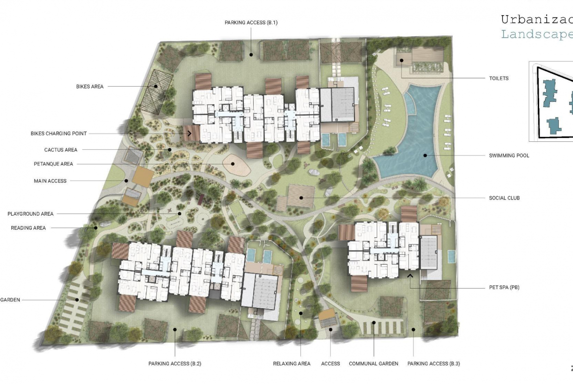 NEW BUILD RESIDENTIAL IN EL VERGEL New Build residential complex of 1, 2 and 3 bedrooms apartments and penthouses in El Vergel designed as compact structures a response to the architects and designers constant pursuit of efficiency in the development. These decisions, spread throughout the various key points of the residential area, ensure that your home stays at the right temperature both in winter and summer. The main feature of the properties will be their large terraces. With regular proportions, they are the ideal spaces for outdoor living. The integration of the living room with these spacious terraces will unite your home as a livable volume where the interior merges with the exterior. Moreover, the construction in the area is planned to have minimal impact. The careful selection of construction materials has allowed you to enjoy the extraordinary views offered by the natural environment of residential complex permanently. Properties organized around a living room open to a terrace-bedroom. Live inside and outside the house. The common areas of this complex embody a deeply natural spirit. As you walk through different areas, you’ll find ideal spaces for strolling, engaging in sports activities, and, above all, using bicycles. Gather with your partner, family, or friends at the social clubs; enjoy open squares protected from the sun and unwind in cool spots where vegetation thrives and air constantly circulates. What else? Take note: ample and numerous swimming pools scattered throughout the residential area, sensory gardens, spaces for yoga practice, self-consumption vegetable gardens, bicycle workshops, and pet washing zones. Always seeking the utmost respect for nature, the project is conceived with brilliant sustainable strategies: rainwater collection, channeling, and reuse systems that will give life to a lush sustainable ecosystem; refreshing gardens with native species that require minimal maintenance; large surfaces of photovoltaic panels for self-consumption energy generation; even multiple charging stations for electric mobile vehicles. Luxury is having everything you need while respecting the surrounding ecosystem.​ All residents of this complex will have access to the Beach Club on the beachfront. Space, where they can organize their own events, have a charging point and parking for electric bikes, store nautical equipment, lockers, and take a shower or dip in the pool after enjoying the sea. A gateway to the sea on the shores of La Almadraba beach in Denia. Just a few meters from La Almadraba beach in El Verger and a few kilometers from Denia, a project is born that defies convention. Its intention is nothing less than making the impossible a reality: a residential development that aspires to become a sustainable, healthy, and respectful community.