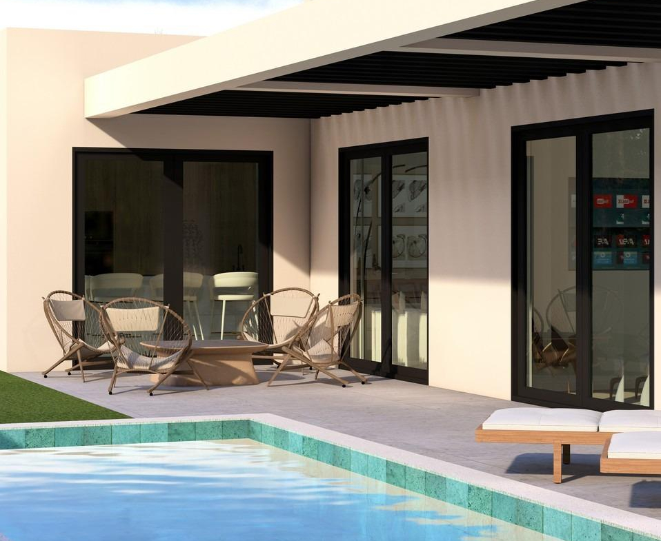 Luxury New Build Villas with in Finestrat near Benidorm Exclusive Collection of Sustainable Independent Villas This prestigious development features 36 independent villas in the sought after Bahia Golf urbanization in Finestrat, just 3.5 km from the Mediterranean coast. Designed to combine luxury, comfort and sustainability, these modern homes offer an exceptional lifestyle on the Costa Blanca, surrounded by nature yet close to all services. Each villa offers 3 or 4 spacious bedrooms, private landscaped gardens and a private infinity pool. Selected units enjoy stunning sea views, while all properties are positioned on generous plots of more than 500 m2 with built areas starting from 222 m2. Flexible Layouts with Basement and Rooftop Solarium Buyers can choose from four different layouts, all carefully designed to maximize space and natural light. Every villa includes a basement level with private parking, storage room, laundry area and two bedrooms with en suite bathrooms connected to an English patio for natural light and ventilation. The ground floor features one or two additional en suite bedrooms, a guest toilet and an open plan kitchen connected to the living and dining area, with direct access to the terrace and pool. A rooftop solarium crowns each property, offering panoramic mountain or sea views and the option to install a jacuzzi. High Quality Finishes and BREEAM Energy Efficiency These villas are built according to BREEAM certification standards, ensuring excellent energy performance and environmental responsibility. Premium specifications include: Double glazed aluminium windows with thermal break and electric shutters Fully installed ducted air conditioning Motorized vehicle access gate Private swimming pool and landscaped garden Modern kitchen by PORCELANOSA equipped with appliances Designer bathrooms with furniture, mirrors and walk in showers Porcelain tiles by PORCELANOSA Prime Location Close to Beaches, Golf and Shopping Finestrat is a charming town located between the mountains and the sea, offering tranquility while being just minutes from vibrant Benidorm. The area combines natural beauty with excellent infrastructure, international schools, restaurants and shopping centers. Distances to Key Points of Interest Benidorm beaches 3.5 km La Marina Shopping Centre 1 km Puig Campana Golf 3 km Benidorm Old Town 4 km Alicante Airport 55 km Access to A7 motorway 2 km Live the Mediterranean Dream in Finestrat These villas offer the perfect balance between luxury, nature and connectivity on the Costa Blanca. Contact us today to receive more information or to arrange a private viewing of these exceptional new build homes in Finestrat.