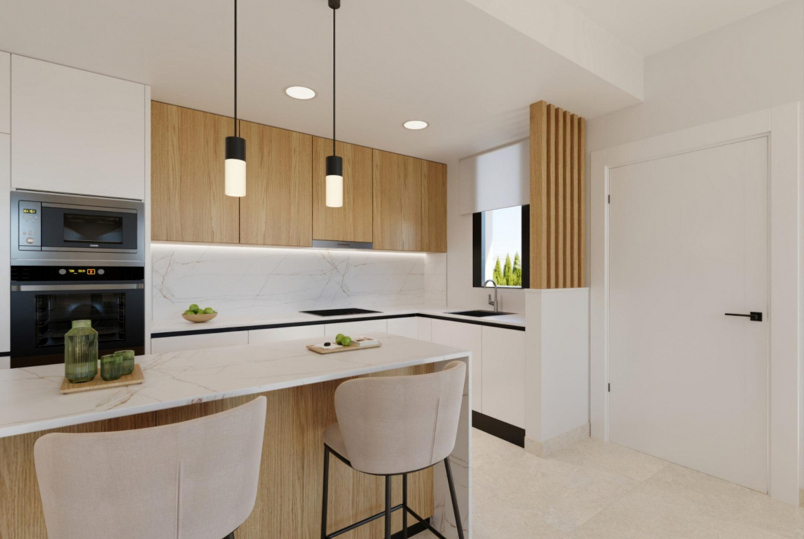New Build Villas in Hacienda del Álamo Golf Resort, Murcia Modern Homes in an Exclusive Natural Setting Discover these fantastic new build villas in the prestigious Hacienda del Álamo Golf Resort, a gated community in the region of Murcia that combines tranquillity, security and a full range of services. Surrounded by nature and blessed with a privileged climate, this complex is ideal for those seeking a relaxed lifestyle without sacrificing comfort. 2 or 3-bedroom villas on one floor with private solarium The residential complex consists of 17 villas on plots starting at 300 m2. You can choose between homes with 2 or 3 bedrooms and 2 full bathrooms on one floor, as well as a terrace area with a 6×2.4 private pool and a private solarium on the roof. High-quality finishes and guaranteed comfort The homes are designed with high-quality materials and conceived to offer energy efficiency and well-being: Exterior carpentry with thermal break Hot water via aerothermal system Pre-installation of ducted air conditioning Private swimming pool Independent irrigation water installation with storage tank and individual pressure unit. Motorised vehicle access gate. Motorised blinds in bedrooms Reinforced entrance door A Resort with Full Services and Golf Course Hacienda del Álamo is one of the most complete complexes on the Costa Cálida. It features: 18-hole professional golf course Hotel with spa Supermarket Restaurants and bars Sports courts and green areas 24-hour security The development recreates the atmosphere of a traditional Mediterranean village, with quiet streets and careful design. Strategic Location Close to Everything Murcia International Airport (Corvera): 20 km Additional golf courses: less than 10 km Cartagena: 35 km Mar Menor beaches: 30 km Espacio Mediterráneo shopping centre: 28 km Port of Mazarrón: 40 km Live in Style on the Costa Cálida These villas represent an excellent opportunity to live or invest in one of the most promising areas of Murcia. Contact us now and discover your next home at Hacienda del Álamo Golf Resort.
