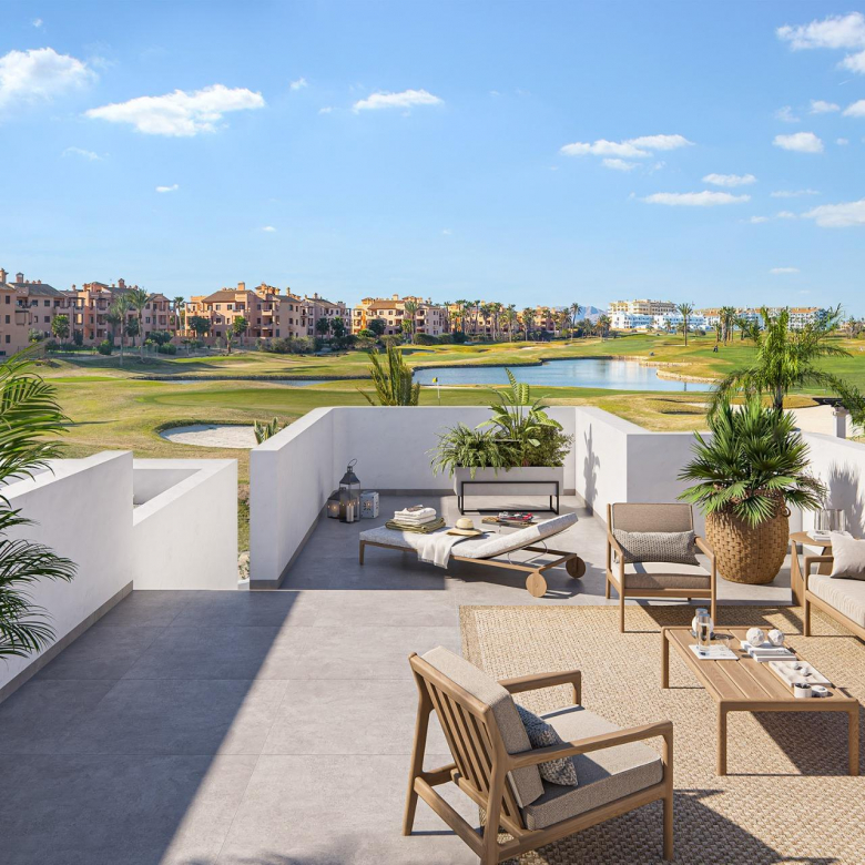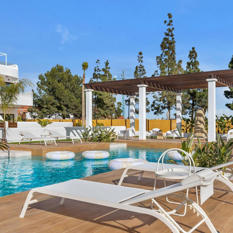 New Build Residential Complex Near Serena Golf and the Mar Menor in Los Alcazares Modern Coastal Living on the Costa Calida Discover this attractive new build residential complex located in Los Alcazares, one of the most popular seaside towns on the Costa Calida. Situated just 500 m from the beaches of the Mar Menor and within walking distance of the town center, this development offers an excellent combination of coastal living, golf surroundings and everyday convenience. Los Alcazares is well known for its relaxed atmosphere, long promenades, warm shallow waters and a wide range of restaurants, shops and services open all year round. Contemporary Apartments Designed for Comfort The development consists of 29 modern homes with 2 or 3 bedrooms, designed with clean architectural lines and high quality finishes. Buyers can choose between ground floor apartments with private garden and terrace, middle floor homes with spacious terraces, or penthouses with private terrace and rooftop solarium offering open views. Many of the properties enjoy views towards Serena Golf and the Mar Menor, creating a calm and pleasant living environment. All homes are designed to maximize natural light and functionality, making them ideal as a permanent residence, holiday home or investment property. High Quality Features and Communal Areas Each property includes a private parking space and a storage room. The specifications are designed to provide comfort and energy efficiency, including double glazed windows with thermal break, pre installation of ducted air conditioning, aerothermal system for domestic hot water, electric shutters in bedrooms and a complete interior and exterior lighting package. Bathrooms are delivered fully equipped with furniture, mirror and shower screen. Residents can enjoy attractive communal areas with landscaped gardens and a communal swimming pool, perfect for relaxing and enjoying the Mediterranean climate. Selected blocks are equipped with lifts for added convenience. Prime Location Between Golf and Sea This residential complex enjoys a privileged location next to Serena Golf, one of the most renowned golf courses in the area, and just a short walk from the calm waters of the Mar Menor. The area is ideal for swimming, sailing, paddleboarding and other water sports throughout the year. Key distances include Mar Menor beaches at 0.5 km, Serena Golf directly next to the development, Los Alcazares town center at 2 km, Cartagena at 22 km and Murcia city at 40 km. Murcia Corvera Airport is approximately 30 km away and Alicante Airport is around 90 km. An Ideal Home or Investment Opportunity With its excellent location, modern design and proximity to both golf and the sea, this new residential complex in Los Alcazares offers an outstanding lifestyle opportunity on the Costa Calida. Contact us today to receive more information or to arrange a private viewing and secure your new home by the Mar Menor.