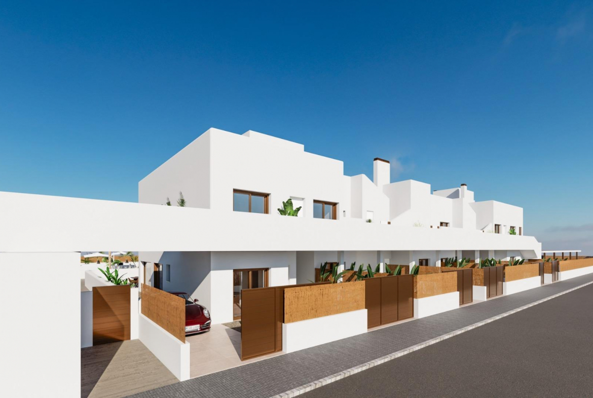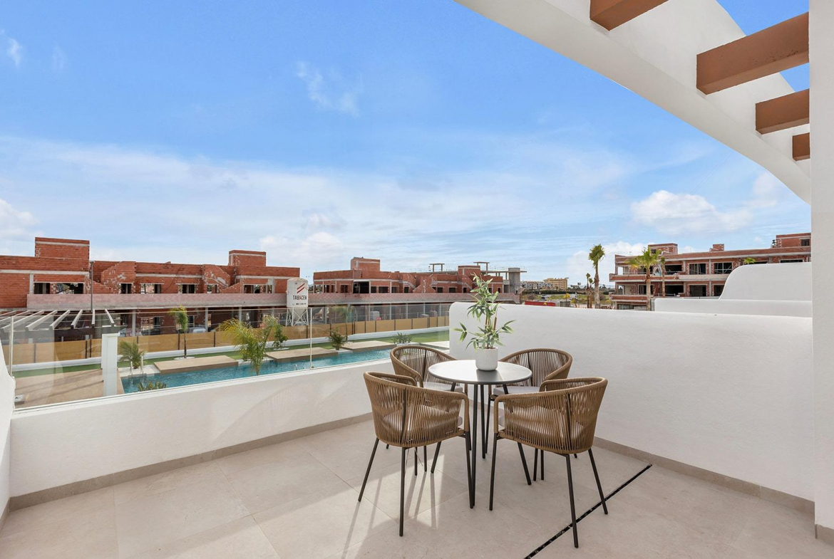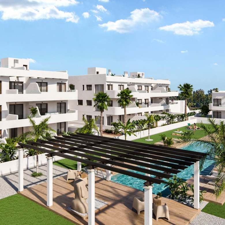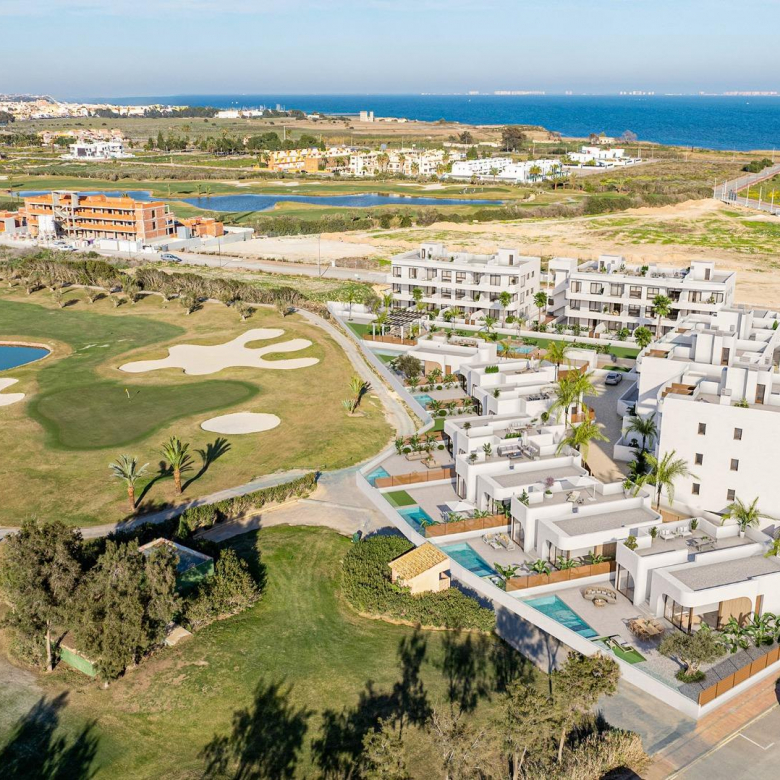 New Build Residential Complex Near Serena Golf and the Mar Menor in Los Alcazares Modern Coastal Living on the Costa Calida Discover this attractive new build residential complex located in Los Alcazares, one of the most popular seaside towns on the Costa Calida. Situated just 500 m from the beaches of the Mar Menor and within walking distance of the town center, this development offers an excellent combination of coastal living, golf surroundings and everyday convenience. Los Alcazares is well known for its relaxed atmosphere, long promenades, warm shallow waters and a wide range of restaurants, shops and services open all year round. Contemporary Apartments Designed for Comfort The development consists of 29 modern homes with 2 or 3 bedrooms, designed with clean architectural lines and high quality finishes. Buyers can choose between ground floor apartments with private garden and terrace, middle floor homes with spacious terraces, or penthouses with private terrace and rooftop solarium offering open views. Many of the properties enjoy views towards Serena Golf and the Mar Menor, creating a calm and pleasant living environment. All homes are designed to maximize natural light and functionality, making them ideal as a permanent residence, holiday home or investment property. High Quality Features and Communal Areas Each property includes a private parking space and a storage room. The specifications are designed to provide comfort and energy efficiency, including double glazed windows with thermal break, pre installation of ducted air conditioning, aerothermal system for domestic hot water, electric shutters in bedrooms and a complete interior and exterior lighting package. Bathrooms are delivered fully equipped with furniture, mirror and shower screen. Residents can enjoy attractive communal areas with landscaped gardens and a communal swimming pool, perfect for relaxing and enjoying the Mediterranean climate. Selected blocks are equipped with lifts for added convenience. Prime Location Between Golf and Sea This residential complex enjoys a privileged location next to Serena Golf, one of the most renowned golf courses in the area, and just a short walk from the calm waters of the Mar Menor. The area is ideal for swimming, sailing, paddleboarding and other water sports throughout the year. Key distances include Mar Menor beaches at 0.5 km, Serena Golf directly next to the development, Los Alcazares town center at 2 km, Cartagena at 22 km and Murcia city at 40 km. Murcia Corvera Airport is approximately 30 km away and Alicante Airport is around 90 km. An Ideal Home or Investment Opportunity With its excellent location, modern design and proximity to both golf and the sea, this new residential complex in Los Alcazares offers an outstanding lifestyle opportunity on the Costa Calida. Contact us today to receive more information or to arrange a private viewing and secure your new home by the Mar Menor.