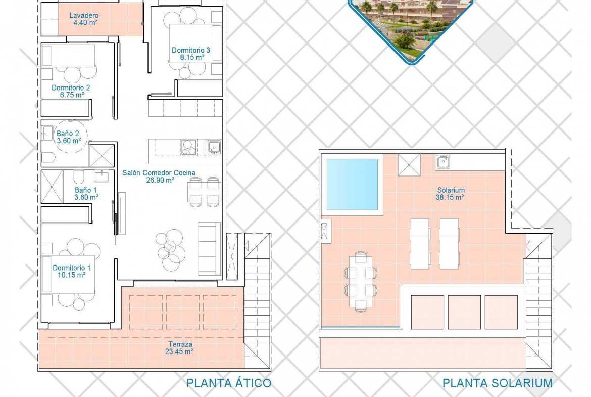 Exclusive New Development in Pilar de la Horadada, Costa Blanca, Spain Modern Homes Close to the Sea Discover this new residential complex in Pilar de la Horadada, a privileged location on the Costa Blanca. Only 2 km from the beach, this project offers a wide variety of 3 bedroom, 2 bathroom properties, with private parking included in the price. The development has spacious communal areas, including a communal swimming pool, landscaped gardens and a children’s play area, ideal for the whole family to enjoy. Different Typologies to suit your Lifestyle This development offers various housing options: Ground floor apartments with private gardens. Middle floor flats with large terraces. Penthouses with private solarium. Ground floor bungalows with private garden. Top floor bungalows with private garden and solarium. Townhouses and semi-detached houses with garden and solarium. All homes have been designed in a modern and functional style, using high quality materials and contemporary finishes. Equipment and Qualities The properties are equipped with: Pre-installation of ducted air conditioning. Exterior aluminium carpentry with thermal break and double glazing. Reinforced access door for greater security. Aerothermal system for efficient hot water production. Built-in wardrobes with LED lighting. Bathroom furniture and screens included. Pilar de la Horadada: A Privileged Place to Live in Pilar de la Horadada is a coastal town at the southern end of the Costa Blanca, with an exceptional climate and an excellent quality of life. Its lively main street offers a wide variety of shops, supermarkets, restaurants and essential services. Just a 5 minute drive away, you will find the stunning beaches of Torre de la Horadada and Mil Palmeras, with golden sand a lovely promenade. In addition, the area has cycle paths, hiking trails and multiple sporting activities. Distances to Key Points Lo Romero Golf Course – 5 km (10 minutes drive). Corvera Airport (Murcia) – 40 km (40 minutes by car). Alicante Airport – 55 km (55 minutes by car). Zenia Boulevard Shopping Centre – 15 km (15 minutes by car). Torre de la Horadada Marina – 3 km (5 minutes by car). Request More Information Today Don’t miss this opportunity to purchase a brand new property in one of the best areas of the Costa Blanca. Contact us now for more details and to arrange a viewing.