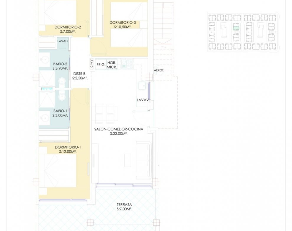 NEW BUILD RESIDENTIAL OF BUNGALOW APARTMENTS IN LOS BALCONES, TORREVIEJA New Build residential complex with magnificent pink salt lake views in Los Balcones. Complex consist of 104 bungalow apartments with 2 and 3 bedrooms, top floor bungalow has private solariums with panoramic views to the salt lake and ground floors bungalows have big terraces overlooking the green area. These bungalows share beautiful green areas and 2 large swimming pools. Optional underground parking and storage spaces are available. This residential offers modern design, selected materials, apartments finished to very highest specification using only top quality materials. The Residential will be built up to a hillside, in this way the view and also the air is clear and unique quality. Los Balcones located just outside Torrevieja with all accessible services, just 5 minutes from Playa de Los Náufragos, supermarkets, the school and the La Zenia Boulevard Shopping Centre, and a minute from Torrevieja University Hospital. Furthermore you will find 4 golf courses within a short drive, including the award winning Las Colinas Golf & Country Club. Complex located 40 minutes from Alicante airport and 1 hour Murcia – Corvera airport.