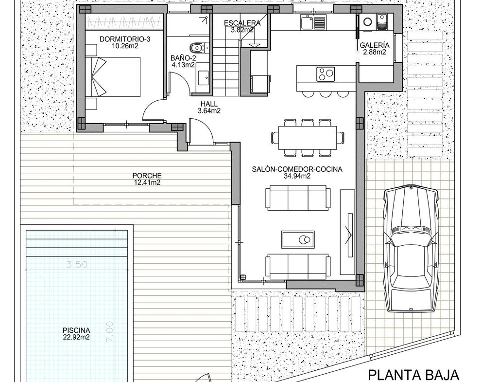 NEW BUILD MODERN VILLAS IN BENIJOFAR New Build villas located in Benijófar, a privileged area of the Costa Blanca, equipped with all services, 20 minutes from Alicante Airport, near the beautiful beaches of Guardamar and several golf courses. It is a modern style villas consisting of spacious living-dining room with an open-plan kitchen, 3 bedrooms( one of them en-suite) and 2 bathrooms. It also has a private plot with terrace, parking area, private pool, Mediterranean-style garden with great views. The house also has hot and cold air conditioning, video intercom and security door. Benijofar it is a lovely village with a charming church and all services such as supermarkets, pharmacies, banks, restaurants and natural park located very close to the villas. There are several golf courses close by as well as water parks in nearby Rojales and Torrevieja. Benijófar located a few minutes from the N-332 and AP-7. Just 30 minutes from Alicante airport, 10 minutes from the beaches of Guardamar and Torrevieja.