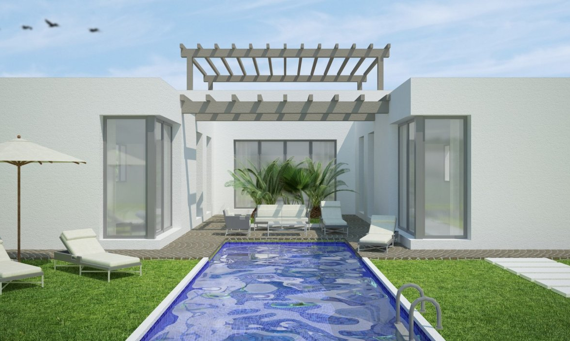 NEW BUILD MODERN VILLAS IN BENIJOFAR New Build villas located in Benijófar, a privileged area of the Costa Blanca, equipped with all services, 20 minutes from Alicante Airport, near the beautiful beaches of Guardamar and several golf courses. It is a modern style villas consisting of spacious living-dining room with an open-plan kitchen, 3 bedrooms( one of them en-suite) and 2 bathrooms. It also has a private plot with terrace, parking area, private pool, Mediterranean-style garden with great views. The house also has hot and cold air conditioning, video intercom and security door. Benijofar it is a lovely village with a charming church and all services such as supermarkets, pharmacies, banks, restaurants and natural park located very close to the villas. There are several golf courses close by as well as water parks in nearby Rojales and Torrevieja. Benijófar located a few minutes from the N-332 and AP-7. Just 30 minutes from Alicante airport, 10 minutes from the beaches of Guardamar and Torrevieja.