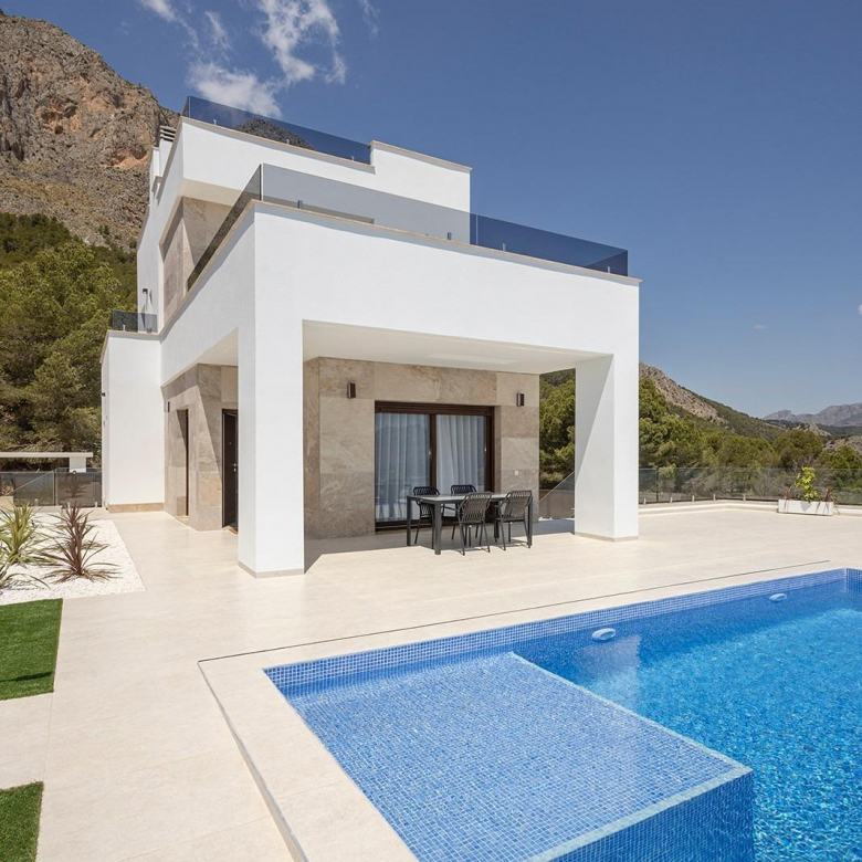 NEW BUILD MODERN VILLA IN BENIJOFAR New Build villa located in Benijófar, a privileged area of the Costa Blanca, equipped with all services, 20 minutes from Alicante Airport, near the beautiful beaches of Guardamar and several golf courses. It is a modern style villa consisting of an open-plan kitchen with spacious living-dining room, 3 bedrooms and 2 bathrooms. It also has a private plot with terrace, parking area, private pool. An options for a solarium at an extra cost. Benijofar it is a lovely village with a charming church and all services such as supermarkets, pharmacies, banks, restaurants and natural park located very close to the villas. There are several golf courses close by as well as water parks in nearby Rojales and Torrevieja. Benijófar located a few minutes from the N-332 and AP-7. Just 30 minutes from Alicante airport, 10 minutes from the beaches of Guardamar and Torrevieja.