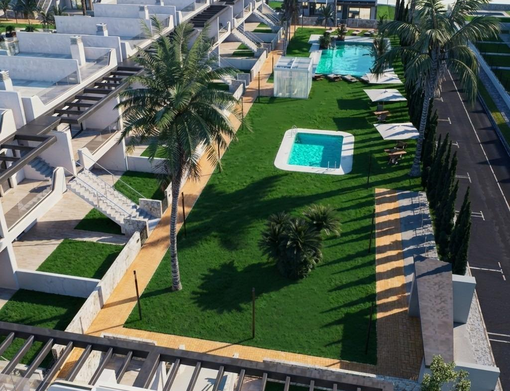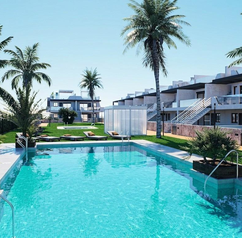 New Build Bungalows with Garden or Solarium Near the Beach in Pilar de la Horadada Modern Mediterranean Homes Designed for Comfort Discover this exclusive new build residential complex in Pilar de la Horadada, offering contemporary bungalows located less than 2 km from the beach. Designed to combine comfort, style and functionality, these homes are ideal for year round living, holidays or as a smart investment on the Costa Blanca. The development offers a choice between ground floor bungalows with private gardens and top floor bungalows with private rooftop solariums. Each property is thoughtfully designed to maximize outdoor living and make the most of the Mediterranean climate. Spacious 2 Bedroom Properties with High Quality Finishes Each bungalow features 2 bedrooms and 2 bathrooms, one of them ensuite, along with a private parking space in the underground garage. The homes are built with quality materials and modern finishes that ensure energy efficiency and durability. Key features include: Preinstallation for ducted air conditioning Aluminium exterior carpentry with double glazing and motorized shutters Security entrance door for peace of mind Aerothermal system for efficient hot water production Built in wardrobes in all bedrooms Fully equipped bathrooms with furniture and shower screens These specifications provide a comfortable and practical home suitable for all seasons. Private Community with Pool and Landscaped Gardens The residential complex is private and secure, with beautifully landscaped communal gardens and a large communal swimming pool. This creates a pleasant and relaxing environment where residents can unwind and enjoy the excellent climate. Located just outside the town center, the development allows residents to walk to supermarkets, restaurants, bars, schools and essential services without needing a car. Excellent Location Close to Beaches and Services Pilar de la Horadada is a charming Spanish town in the southernmost part of the Costa Blanca, known for its lively atmosphere, local shops, traditional squares and friendly community. The sandy beaches of Torre de la Horadada Beach and Mil Palmeras Beach are just 2 km away, offering fine golden sand, a scenic promenade and a marina. The area is also ideal for cycling, walking and outdoor sports. Distances to Key Points of Interest Lo Romero Golf 5 km La Zenia Boulevard 15 km Murcia Corvera Airport 40 km Alicante Airport 55 km Torre de la Horadada Marina 3 km Reserve Your New Home Today Do not miss this opportunity to own a brand new bungalow near the beach in one of the most desirable areas of the Costa Blanca. Contact us today for more information and to arrange a visit.