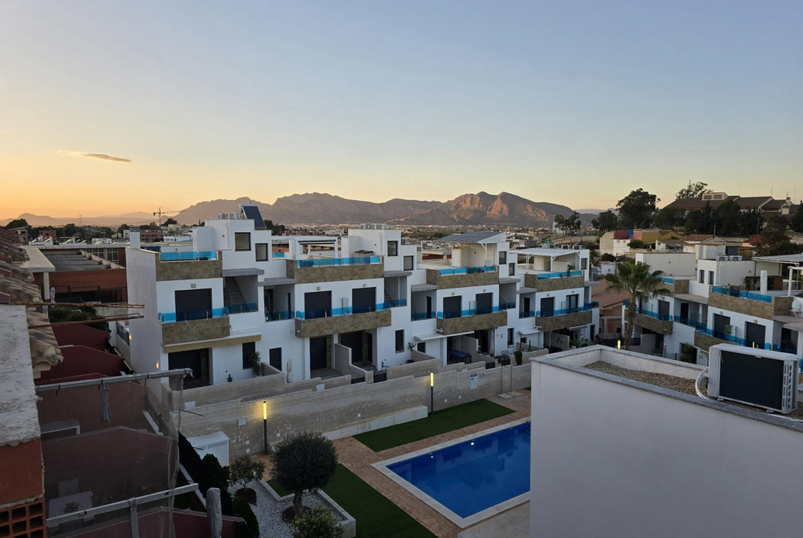 New Build Townhouses with Solarium and Basement Garage in Bigastro Vega Baja Exclusive Development of Only Two Modern Homes This boutique new build project consists of just two townhouses in the peaceful town of Bigastro, located in the Vega Baja area of the Costa Blanca South. Designed with a practical layout across several levels, these homes combine space, comfort and energy efficiency in a well connected residential setting. Bigastro is known for its quiet atmosphere, traditional Spanish character and excellent access to nearby towns, beaches and services. It offers a relaxed lifestyle while being close to everything needed for daily living, making it ideal for both permanent residence and holiday use. Spacious Layout Across Four Levels Each property is distributed over basement, ground floor, first floor and rooftop solarium, providing generous interior and exterior living areas. The 59 m2 basement is designed as a private garage with motorized access door, offering secure parking and additional storage space. On the ground floor, you will find a bright open plan living room with kitchen, a guest toilet and two terraces, one at the front and one at the rear, allowing natural light and ventilation throughout the day. The first floor features 3 bedrooms and 2 bathrooms, one of them ensuite, plus an additional terrace. On the top level, a private rooftop solarium of approximately 40 m2 provides the perfect space to relax, sunbathe or create an outdoor chill out area. Quality Features and Energy Efficient Systems These homes are built with modern materials and thoughtful details to ensure comfort and efficiency, including: Reinforced security entrance door Aerothermal system for hot water Photovoltaic solar panel Electric shutters in living room and bedrooms Pre installation of ducted air conditioning Motorized garage door Residents also have access to the communal swimming pool within the urbanization, adding extra value for leisure and relaxation. Well Connected Location Close to Beaches and Services Bigastro town center 0.5 km Orihuela city 5 km Guardamar del Segura beaches 15 km Zenia Boulevard Shopping Center 20 km Vega Baja Hospital 10 km Alicante International Airport 48 km Several golf courses within 15 km The nearby AP 7 motorway provides fast connections to Alicante, Murcia and the surrounding coastal towns. An Excellent Opportunity in a Growing Residential Area With local shops, schools, sports facilities, parks and restaurants, Bigastro is becoming increasingly popular among both national and international buyers seeking quality of life and good connections. Contact us today to receive more information or to arrange a visit to these exclusive new build townhouses in Bigastro.