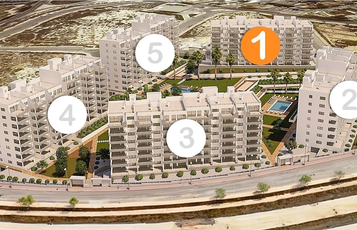 New Residential Development in San Miguel de Salinas Exclusive Apartments in a Unique Natural Environment Discover this new development in San Miguel de Salinas, an exclusive residential complex made up of 5 blocks of flats with spacious communal areas, designed to offer comfort and quality of life. This gated complex has a spectacular communal garden of almost 10,000 m², distributed over three levels and integrated with three communal swimming pools, surrounded by natural lawns and a carefully selected range of trees and plants. The homes have been designed to take advantage of natural light and unobstructed views, offering an ideal option both as a second home and for year-round living. Types of homes available In this exclusive residential complex, you can choose between: Ground floors with large private gardens. Intermediate floors with terraces of more than 20 m². Penthouses with terraces and private rooftop solarium. Currently available is Block 1, comprising 42 homes with excellent value for money. First Class Quality and Equipment All homes come fully equipped, including: Electrical appliances included in the kitchen. Fully equipped bathrooms, with furniture, screens and LED lighting system. Complete installation of ducted air conditioning. Parking space and storage room included in the price. We also have show flats in another similar project, so that you can see the quality of the finishes before delivery. Strategic Location on the Costa Blanca San Miguel de Salinas is a charming town in the Vega Baja del Segura region, just a few minutes from the best beaches and golf courses on the Costa Blanca. Surrounded by a privileged natural environment, the municipality offers a peaceful atmosphere and all essential services such as supermarkets, restaurants, health centres and schools. Distances to the Main Points of Interest Las Colinas and Campoamor Golf Courses – 7 km. Beaches of Orihuela Costa and Torrevieja – 10 km. Zenia Boulevard Shopping Centre – 9 km. Alicante Airport – 50 km. Murcia-Corvera Airport – 55 km. Your New Home Awaits in San Miguel de Salinas Whether you are looking for an investment on the Costa Blanca or a home to enjoy all year round, this development offers a perfect combination of luxury, comfort and unbeatable location. Contact us today for more information and to arrange a viewing.