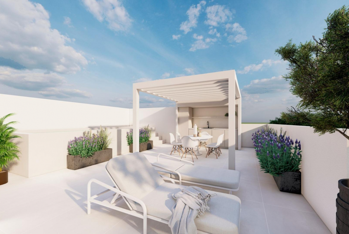 Exclusive New Build Bungalows with Private Pool in Pilar de la Horadada Modern Living in a Prime Costa Blanca Location Discover an exclusive new development of only two premium bungalows located in the heart of Pilar de la Horadada, a charming coastal town in the Costa Blanca known for its fine sandy beaches, peaceful ambiance and Mediterranean lifestyle. The residential complex is situated just 2.5 km from the beach and within walking distance of supermarkets, shops, restaurants and essential daily services. With excellent road connections and Alicante Airport only 45 km away, this location offers the perfect balance between tranquility, comfort and accessibility. Two Unique Homes Designed for Comfort The project features two elegant 2 bedroom, 2 bathroom homes, designed with high quality finishes and modern layouts. One of the bathrooms is ensuite, providing additional privacy and convenience. Each property offers its own distinctive outdoor living experience to match different lifestyle preferences. Ground Floor Bungalow with Spacious Garden and Private Pool The ground floor unit includes a generous 75 m2 garden ideal for outdoor dining, sunbathing and leisure. A private pool is included, along with private parking inside the plot. Large windows and open spaces create a bright and welcoming atmosphere throughout the home. Penthouse Bungalow with Private Solarium and Pool The upper floor residence offers a fenced parking space on the ground level and access via an exterior staircase. It boasts a spacious terrace and a private rooftop solarium with its own swimming pool, creating an exclusive retreat for enjoying the Mediterranean climate and open views. Lifestyle in Pilar de la Horadada This coastal municipality is known for its calm and relaxed atmosphere, beautiful beaches such as Mil Palmeras and a wide range of outdoor activities. Snorkelling, diving, coastal walks and cycling are part of the everyday lifestyle enjoyed by residents and visitors alike. Nature lovers will appreciate the proximity to the San Pedro Salt Lakes, located approximately 12 km away, offering scenic landscapes and wildlife. Distances to Key Points of Interest Beach: 2.5 km San Pedro Salt Lakes: 12 km Lo Romero Golf: 6 km Alicante Airport: 45 km Murcia Airport: 40 km Torrevieja: 20 km Secure Your Exclusive Home Today Take the opportunity to own a unique property with exceptional outdoor spaces in one of the most desirable areas of the Costa Blanca. Contact us today to arrange a visit and reserve your new home in Pilar de la Horadada.