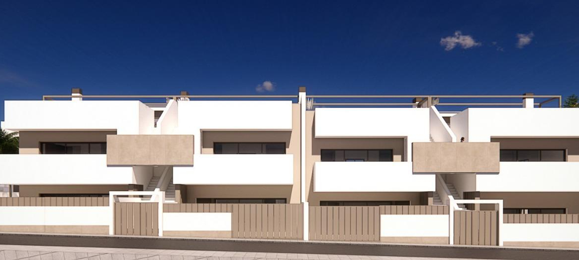 New Build Bungalows for Sale in Pilar de la Horadada 3 km from Beach Boutique Residential Development in Pilar de la Horadada Discover this exclusive new build residential complex of modern bungalows located in Pilar de la Horadada, the southernmost town of the Costa Blanca. This boutique project consists of only 14 carefully designed homes with 2 or 3 bedrooms and 2 bathrooms, offering an ideal combination of comfort, style and Mediterranean lifestyle. The development is situated in a quiet residential area within walking distance of the town center, allowing residents to enjoy easy access to shops, restaurants, supermarkets and essential services. Pilar de la Horadada is known for its welcoming atmosphere, traditional Spanish charm and lively main street filled with cafes, boutiques and charming squares. Modern Bungalows with Private Outdoor Spaces The homes have been designed to offer bright interiors and functional layouts, perfect for both permanent living and holiday use. Ground floor bungalows feature a private garden and private swimming pool, creating the perfect setting to enjoy outdoor living, sunbathing or entertaining family and friends. Top floor bungalows include a spacious terrace and a private rooftop solarium. The solarium comes with a summer kitchen and offers the option to add a private pool or jacuzzi at an extra cost, making it an ideal space to relax while enjoying the warm Mediterranean climate and open views. Each property includes a private parking space within the residential complex for added convenience. Quality Construction and Modern Features These new build homes are built with quality materials and modern installations designed to ensure comfort and energy efficiency throughout the year. Aluminum exterior carpentry with thermal break Fully fitted kitchens with included appliances Bathrooms equipped with mirrors and shower screens Interior and exterior LED lighting Hot water system with energy efficient aerothermal technology Pre installation for ducted air conditioning The combination of modern design and practical features makes these homes an excellent option for buyers looking for a contemporary property on the Costa Blanca. Excellent Location Close to Beaches and Golf Pilar de la Horadada enjoys a strategic location close to some of the best beaches and golf courses in the region. Torre de la Horadada beach 3 km Mil Palmeras beach 3 km Lo Romero Golf 6 km Region de Murcia International Airport 45 km Alicante Elche Airport 75 km The area also offers excellent road connections to nearby coastal towns, marinas and leisure facilities, making it a perfect base to explore the Costa Blanca and Costa Calida. Find Your New Home on the Costa Blanca If you are looking for a modern new build bungalow near the beach with excellent amenities and a fantastic location, this residential development in Pilar de la Horadada is an outstanding opportunity. Contact us today for more information or to schedule a visit.