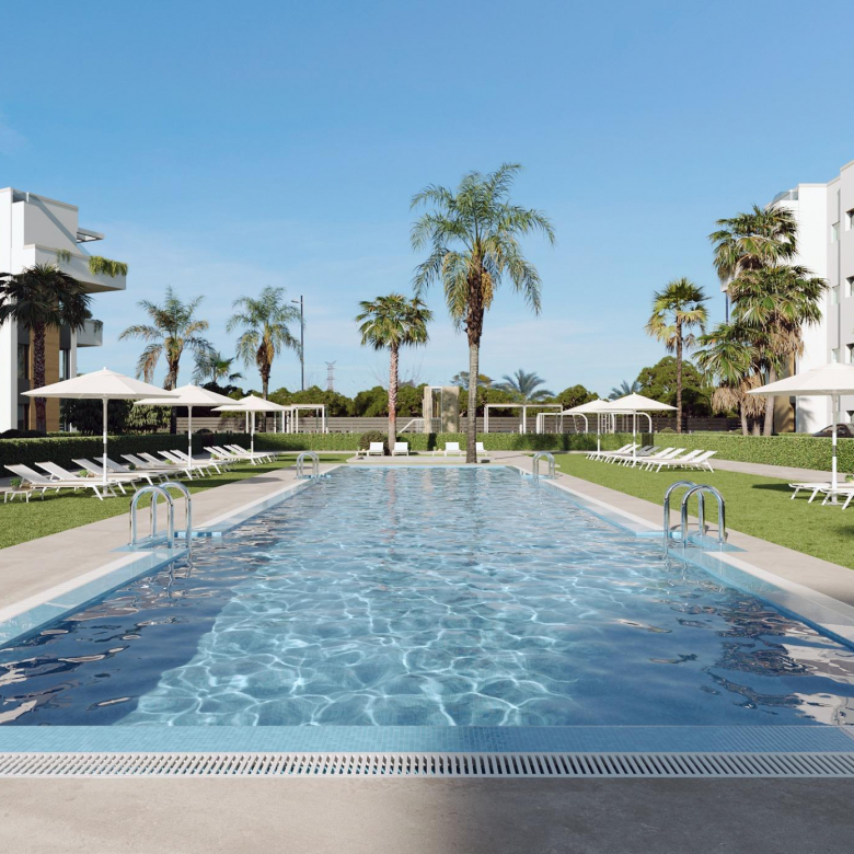 New Build Tourist Apartments in Santa Rosalía Lake and Life Resort Costa Cálida Prime Location in the Heart of the Costa Cálida These new build tourist apartments in Santa Rosalía Lake and Life Resort represent one of the best investment and lifestyle opportunities in the Region of Murcia. Located less than 4 km from the beaches of Los Alcázares and just 22 km from Murcia International Airport, the complex offers an unbeatable combination of accessibility, leisure, and modern Mediterranean living. The historic city of Cartagena is only 15 minutes away, while several prestigious golf courses are located within a 10 km radius. Exclusive Residential Complex with 40 Apartments The project consists of five independent buildings with a total of 40 fully furnished apartments, distributed across four floors with two units per level. Each apartment features 2 bedrooms and 2 bathrooms, designed for comfort and functionality. Buyers can choose between ground floor units with private gardens, middle floor apartments with large terraces, or penthouses with private solarium and stunning open views. Fully Equipped Homes Ready to Move In Every property is delivered turnkey, including furniture, air conditioning, lighting, kitchen appliances, bed linen, towels, and a decoration package. This ensures that both owners and guests can enjoy a hassle-free experience from day one, making it an ideal product for holiday rentals or personal use. Premium Amenities and Communal Areas The gated community is set on a 7,000 m² plot, designed with privacy and security in mind thanks to perimeter fencing and controlled access. Residents and guests benefit from landscaped Mediterranean gardens, communal pools, children’s playgrounds, and ample parking spaces. Additionally, the development includes a dedicated building for shared services such as reception, café, laundry and gym. Santa Rosalía Lake and Life Resort Lifestyle Owning an apartment here means access to the exclusive amenities of Santa Rosalía Lake and Life Resort, a one-of-a-kind residential complex with more than 126,000 m² of green areas. Highlights include a spectacular 17,000 m² crystal-clear lagoon with white sandy beaches, two islands (one with its own bar), beach clubs, sports facilities, cycling and hiking trails, paddle and tennis courts, mini golf, dog parks, and a vibrant clubhouse. Security and maintenance services operate 24/7, ensuring peace of mind for residents and visitors alike. Invest in Quality and Lifestyle These new build tourist apartments combine high rental potential with an exceptional lifestyle on the Costa Cálida. Whether as a holiday home or an investment, Santa Rosalía Lake and Life Resort is a destination that guarantees quality and value. Contact us today to learn more and secure your apartment in this unique Mediterranean resort.