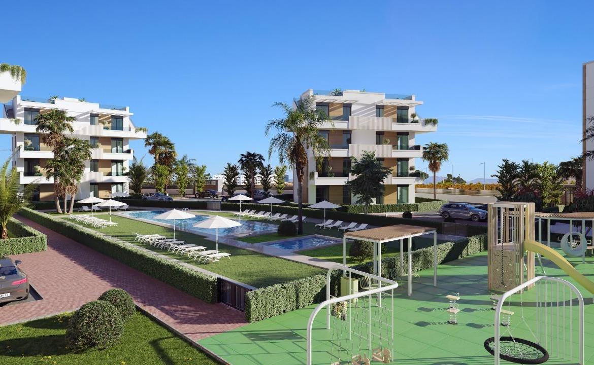 New Build Tourist Apartments in Santa Rosalía Lake and Life Resort Costa Cálida Prime Location in the Heart of the Costa Cálida These new build tourist apartments in Santa Rosalía Lake and Life Resort represent one of the best investment and lifestyle opportunities in the Region of Murcia. Located less than 4 km from the beaches of Los Alcázares and just 22 km from Murcia International Airport, the complex offers an unbeatable combination of accessibility, leisure, and modern Mediterranean living. The historic city of Cartagena is only 15 minutes away, while several prestigious golf courses are located within a 10 km radius. Exclusive Residential Complex with 40 Apartments The project consists of five independent buildings with a total of 40 fully furnished apartments, distributed across four floors with two units per level. Each apartment features 2 bedrooms and 2 bathrooms, designed for comfort and functionality. Buyers can choose between ground floor units with private gardens, middle floor apartments with large terraces, or penthouses with private solarium and stunning open views. Fully Equipped Homes Ready to Move In Every property is delivered turnkey, including furniture, air conditioning, lighting, kitchen appliances, bed linen, towels, and a decoration package. This ensures that both owners and guests can enjoy a hassle-free experience from day one, making it an ideal product for holiday rentals or personal use. Premium Amenities and Communal Areas The gated community is set on a 7,000 m² plot, designed with privacy and security in mind thanks to perimeter fencing and controlled access. Residents and guests benefit from landscaped Mediterranean gardens, communal pools, children’s playgrounds, and ample parking spaces. Additionally, the development includes a dedicated building for shared services such as reception, café, laundry and gym. Santa Rosalía Lake and Life Resort Lifestyle Owning an apartment here means access to the exclusive amenities of Santa Rosalía Lake and Life Resort, a one-of-a-kind residential complex with more than 126,000 m² of green areas. Highlights include a spectacular 17,000 m² crystal-clear lagoon with white sandy beaches, two islands (one with its own bar), beach clubs, sports facilities, cycling and hiking trails, paddle and tennis courts, mini golf, dog parks, and a vibrant clubhouse. Security and maintenance services operate 24/7, ensuring peace of mind for residents and visitors alike. Invest in Quality and Lifestyle These new build tourist apartments combine high rental potential with an exceptional lifestyle on the Costa Cálida. Whether as a holiday home or an investment, Santa Rosalía Lake and Life Resort is a destination that guarantees quality and value. Contact us today to learn more and secure your apartment in this unique Mediterranean resort.