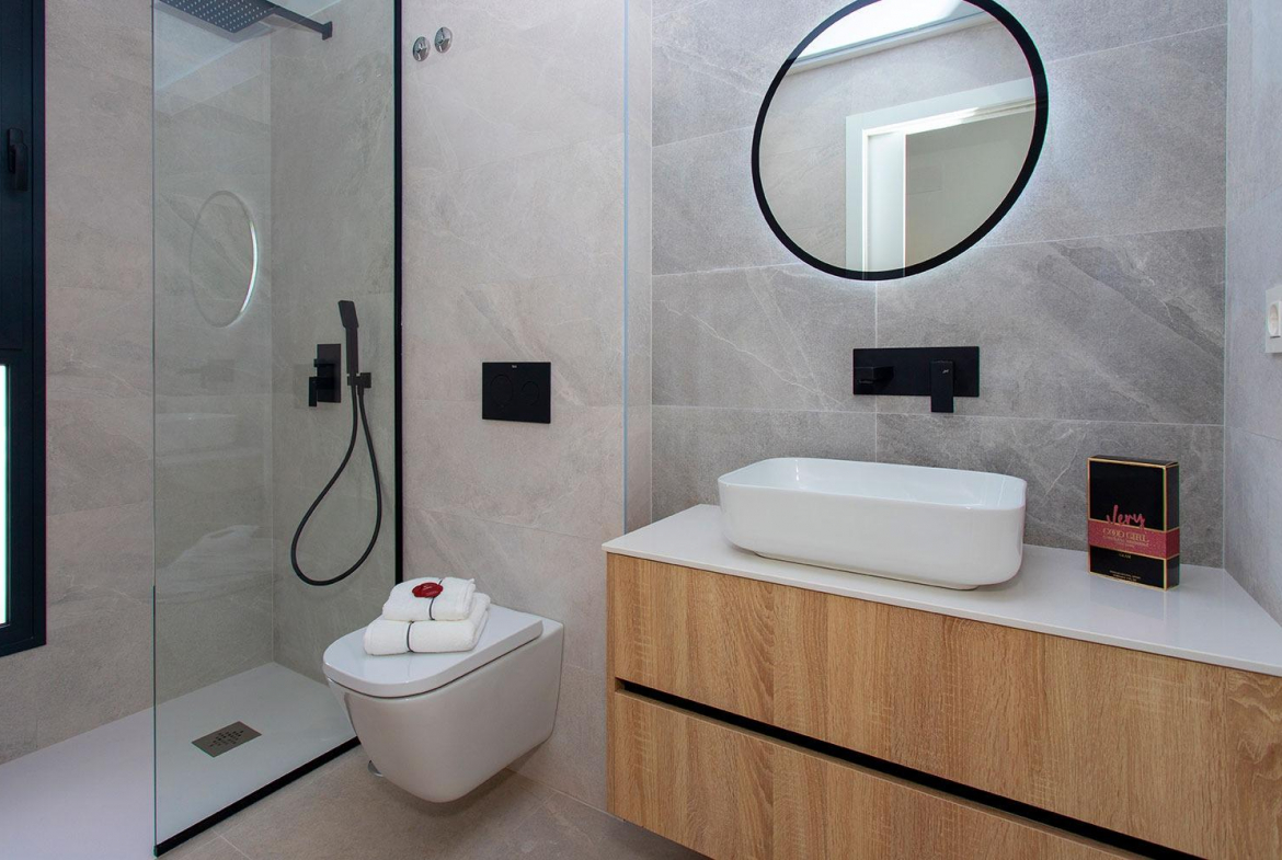 New Build Semi Detached Villas in Sucina: last unit Fully Equipped and Ready to Move In Exceptional Opportunity in Sucina This is your chance to secure the last available unit in this modern new build development, previously used as the show home. It is key ready and delivered fully equipped with furniture, appliances, interior and exterior lighting, air conditioning, electric car charger and an outdoor summer kitchen with fridge. A unique turnkey opportunity in one of the most charming towns of the Costa Calida. Contemporary Design Focused on Light and Comfort These semi detached villas stand out for their elegant and pure contemporary design, with layouts created to maximize natural Mediterranean light. The main living areas feature an open plan concept where the kitchen and living room merge seamlessly, connected by a stylish central island. This space flows directly to the porch and the pool terrace, creating a harmonious indoor outdoor lifestyle ideal for sunny days. Single Level Living With Private Pool and Solarium The villa includes 3 bedrooms and 2 bathrooms on one floor, plus a convenient exterior guest toilet for the pool area. The master bedroom is exceptionally bright and offers an en suite bathroom, walk in wardrobe and direct access to the main terrace. The property also boasts an impressive 82 m2 solarium, perfect for sunbathing or creating an outdoor lounge. Built on a 211 m2 plot, the villa includes off road parking within the plot. Prime Location Close to All Services Located just a short walk from the center of Sucina, the villa provides immediate access to daily amenities such as shops, restaurants and supermarkets. Sucina is a traditional Spanish town that has grown in popularity in recent years due to its relaxed lifestyle, authentic atmosphere and proximity to the coast. The beautiful beaches of the Costa Calida and the Mar Menor are only a few minutes away. Distances to Key Points of Interest Murcia Airport 25 km Alicante Airport 75 km Beaches of the Mar Menor 15 km Nearest Golf Course 4 km Port of San Pedro del Pinatar 20 km Live a High Quality Mediterranean Lifestyle Built with excellent materials and designed for comfort, these villas offer an exceptional opportunity to enjoy open spaces, natural light and pure air all year round. Contact us today to arrange a visit and secure this exclusive key ready home in Sucina.